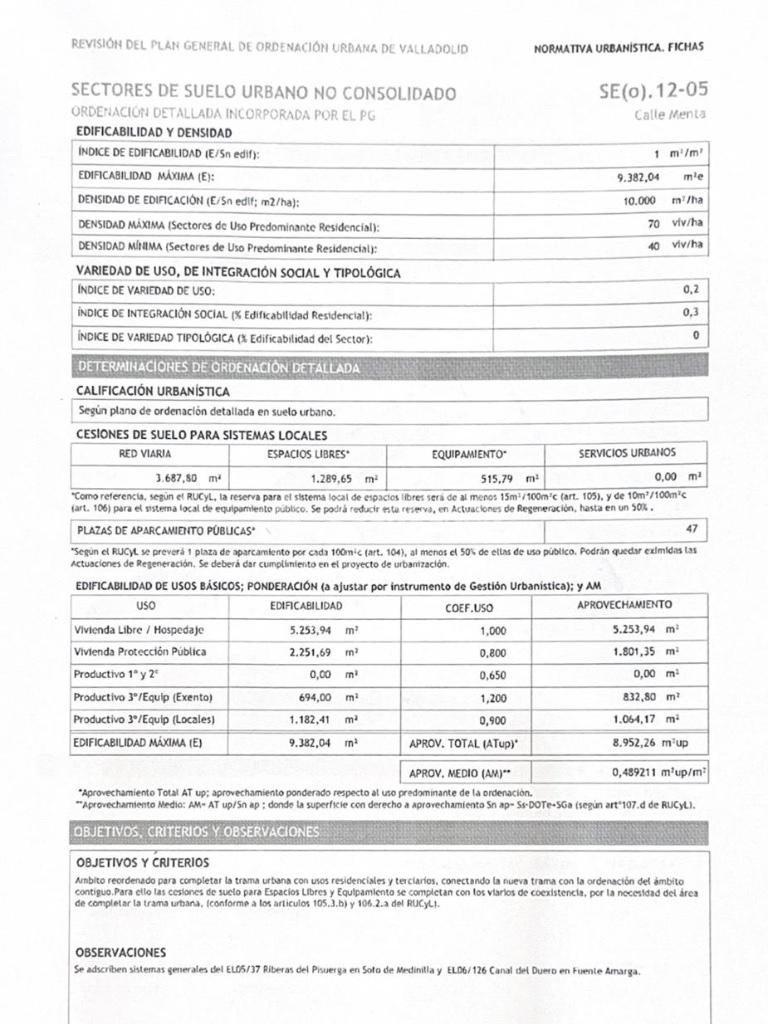 0.48% edificabilidad residencial destinados a residencial en 4 alturas + usos adicionales (garajes, trasteros, terrazas, patios.. . )